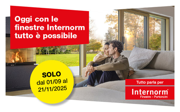 Dal 1° settembre al 21 novembre 2025, Internorm lancia una promozione esclusiva valida su tutti i modelli di finestre, comprese le ultime novità. Un’occasione unica per rinnovare i tuoi serramenti con soluzioni ad alte prestazioni, design personalizzabile e vantaggi economici concreti.